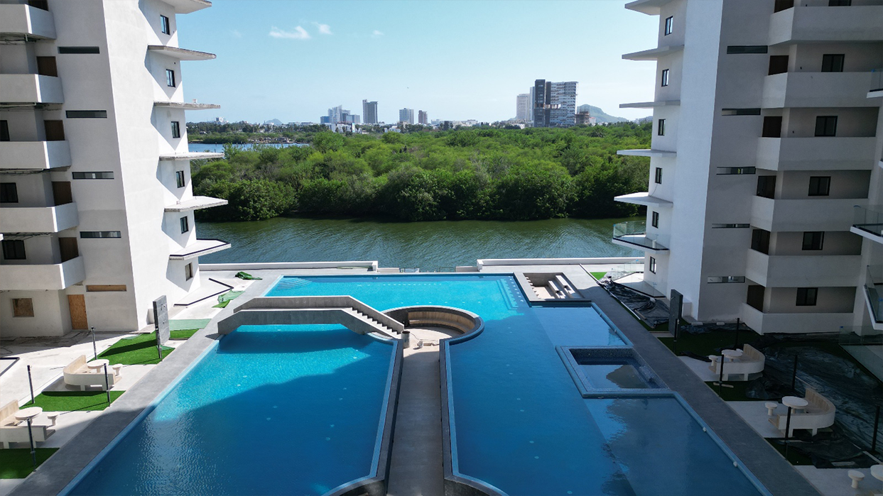 Tres vanguardistas torres diseñadas en su interior por Victor de Rueda, alberca tamaño olímpico, coworking, vistas al mar y a los manglares rodeado de naturaleza en máxima expresión.